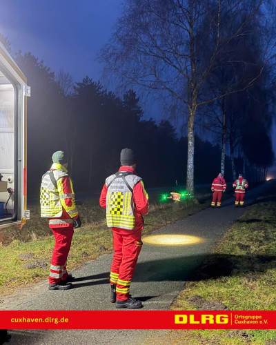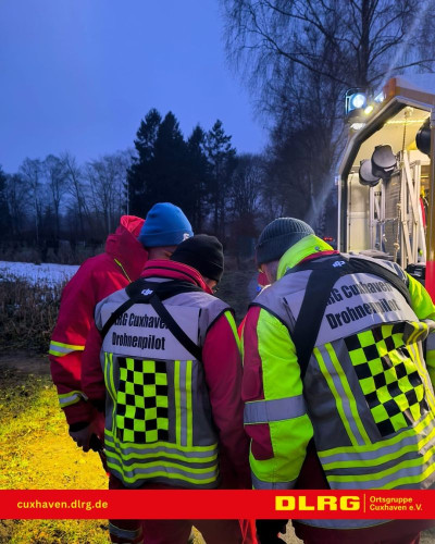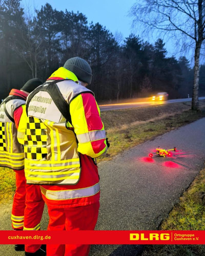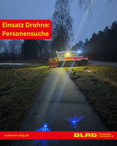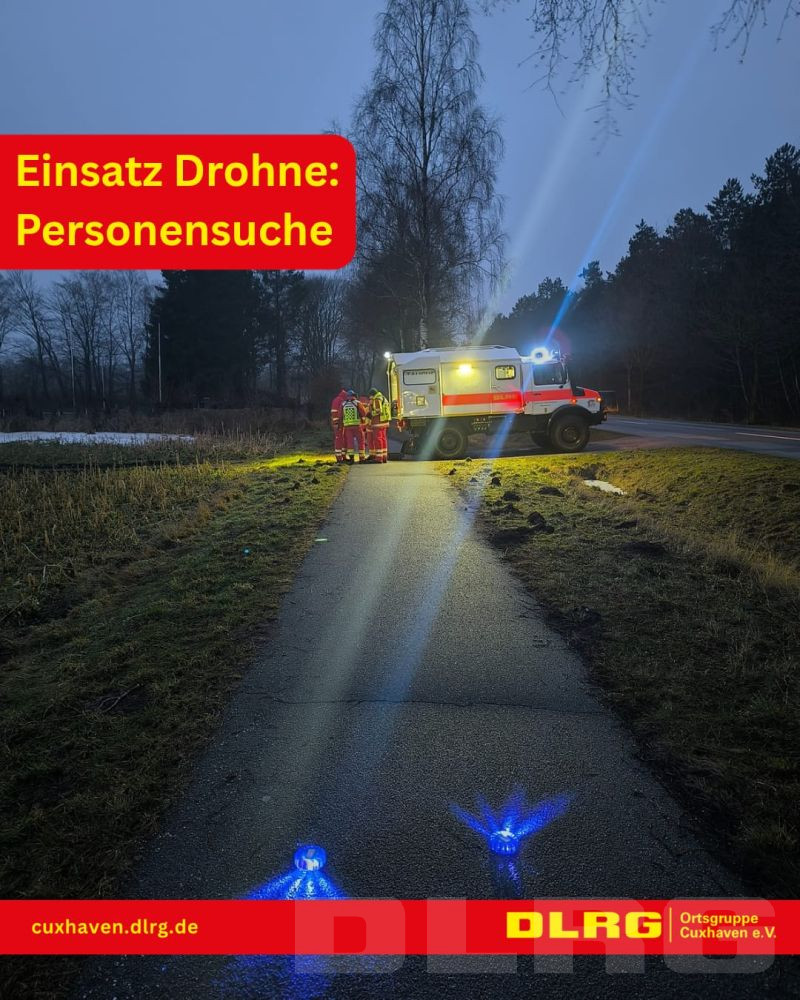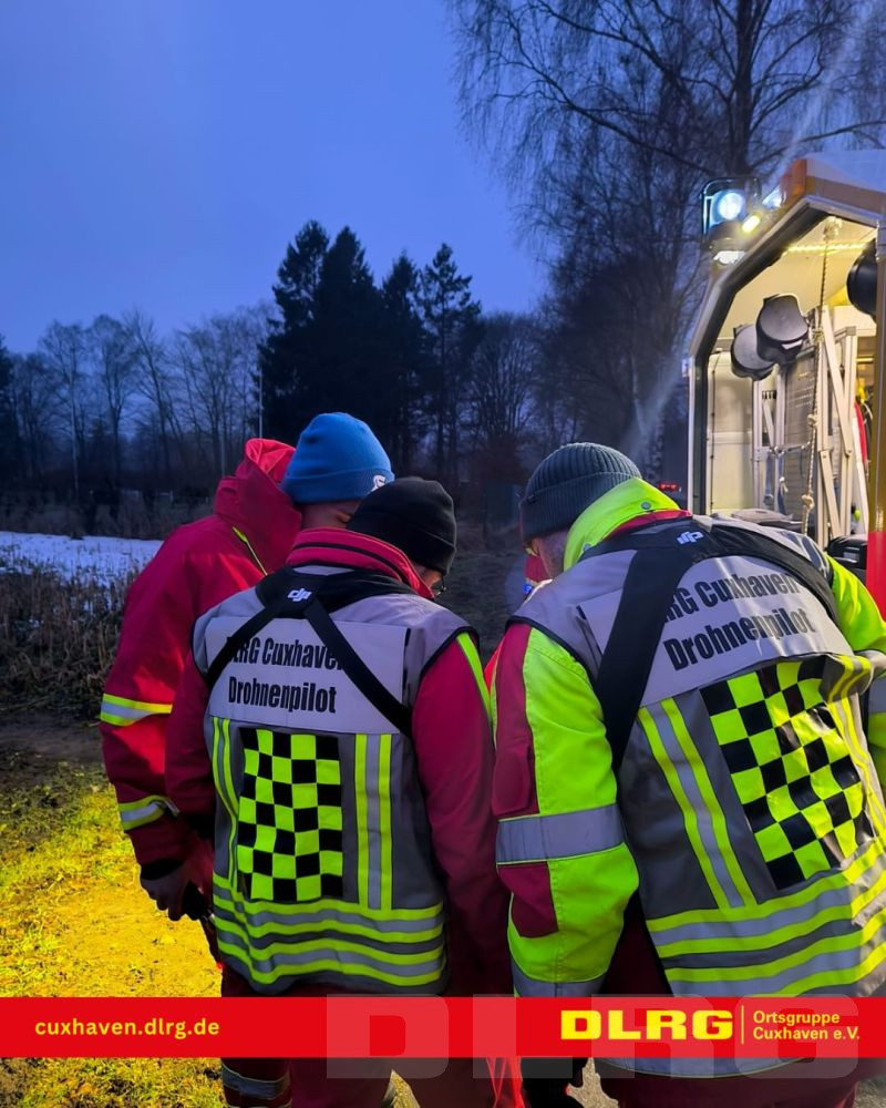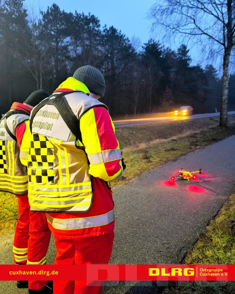 Nachdem gegen 15:30 Uhr die Meldung bei der Polizeiinspektion Cuxhaven einging, dass im Wald des ehemaligen Marinemunitionsdepots Oxstedt Hilfeschreie wargenommen wurden, brachte die POLIZEI ihre Drohne in den Einsatz. Darüber hinaus wurden durch die Leitstelle der BF Cuxhaven auch die Drohnen der DLRG OG Cuxhaven und der Facheinheit Information und Kommunikation (IuK), zusammen mit dem ELW der FF-Mitte alarmiert.