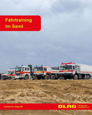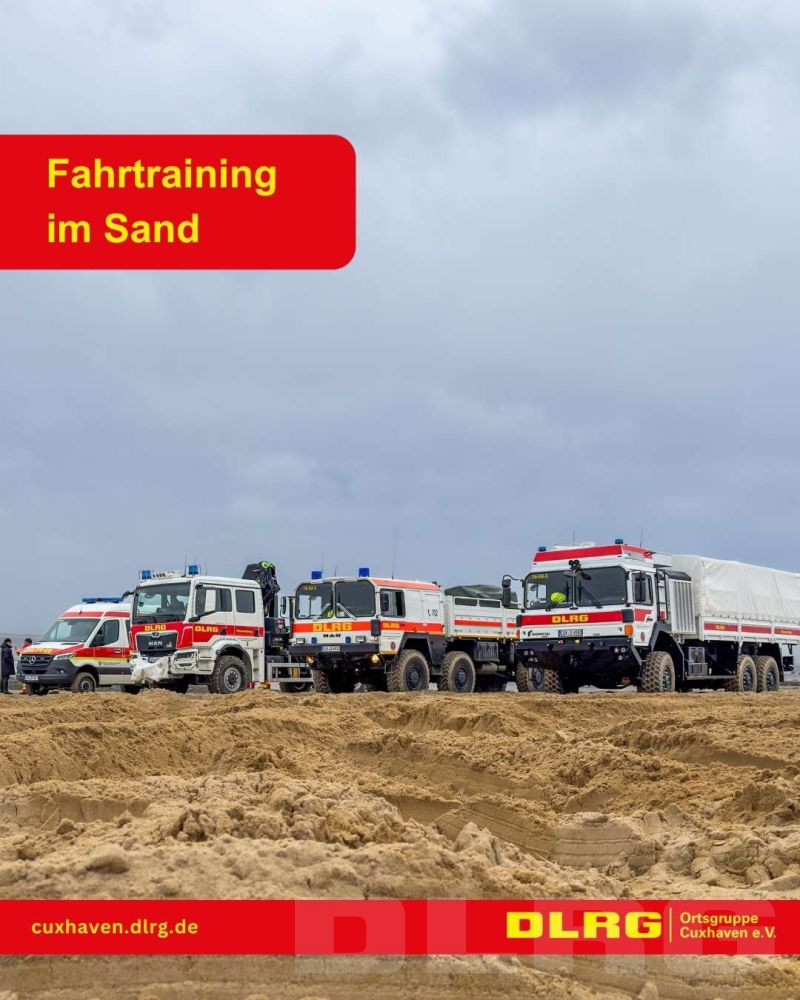 Die Einsatzkräfte der DLRG Cuxhaven hatten kürzlich die besondere Möglichkeit, ein umfangreiches Fahrtraining im Sand am Strand von Duhnen durchzuführen. Ein herzlicher Dank gilt der NHC für die Bereitstellung dieser außergewöhnlichen Trainingsmöglichkeit.