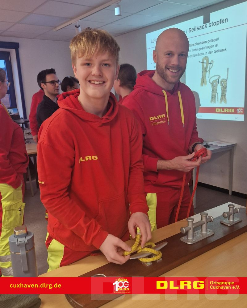 Dazu gehören unter anderem theoretische Themen wie die Struktur und die Abläufe des stationären und mobilen Wasserrettungsdienstes, eine Einführung in die rechtlichen Grundlagen eines Wasserretters, als auch viel Praxis durch das Erlernen von Knoten und die Lösung eines Einsatzszenarios anhand eines Planspiels.